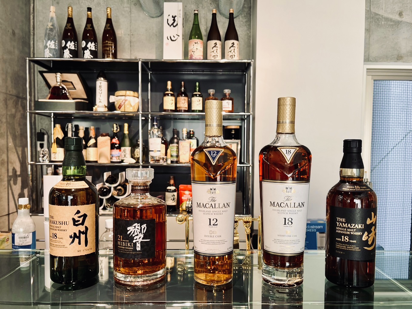 ブログ いろいろ ブログ ジャパニーズシングルモルト ジャパニーズシングルモルト 2023.03.2 いろいろ ブログ オフィスバーのラインナップがいい感じになってきた。 バカラのデキャンタをドンと置いて、重いグラスにストレートでウイスキーの香りを楽しむ。 うまいと感じるのはやはり18年。 ハイボールにする時は、12年の方がいい。 山崎25年、白州25年、響30年、用意しておきます。 飲みましょう!