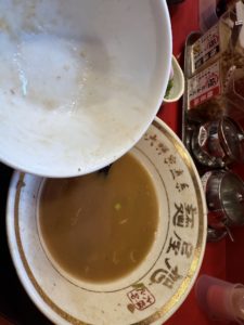 食券を渡す際に、麺の硬さ・味の濃さ・脂の量を聞かれるので、