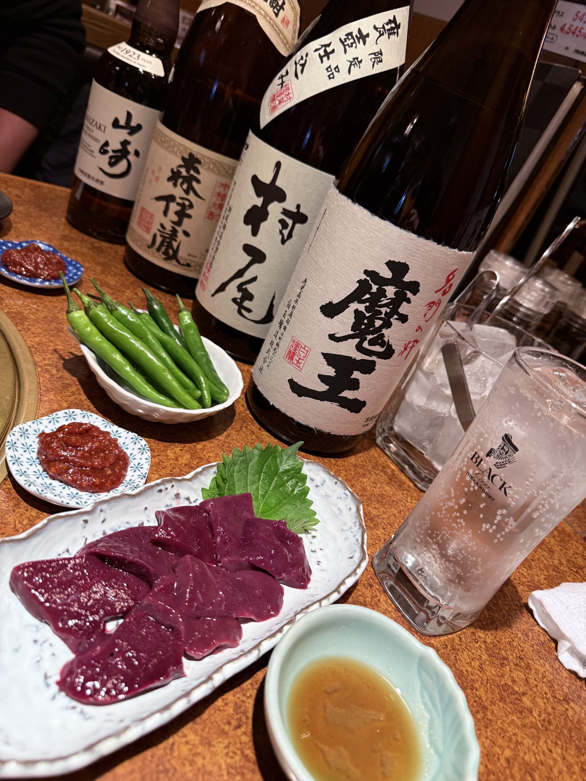 レバーとセンマイをつまみながら、